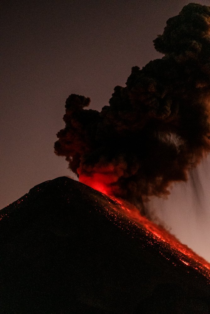 A noite caiu, o frio chegou e, a cada nova explosão, o solo tremia sob meus pés. Era impossível não sentir a força da natureza, o poder do fogo e da terra convivendo em harmonia.
